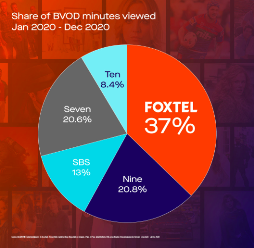 “Foxtel集团无与伦比的内容质量使我们在澳大利亚的广告支持BVOD市场占据了压倒性的份额——Foxtel Go/Now主导了其他商业提供商。”
