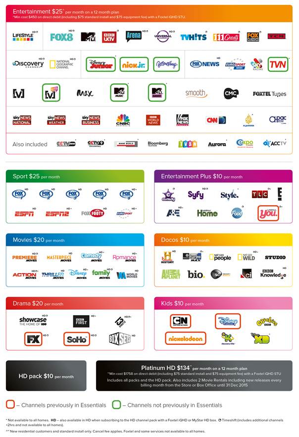 在新的包装中,我丢失了FX,SOHO,卡通网络,Nickelodeon&Disney(优质内容),但获得了迪士尼JNR&Nick JR和一些音乐频道和纯种赛车渠道,总节省了19美元。