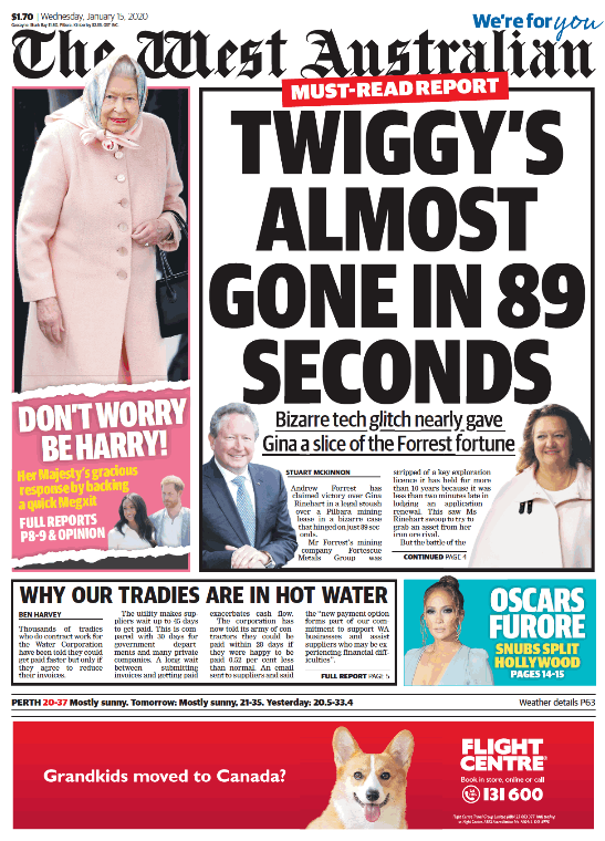 “借助我们在营销传播部门建立的结构,我们能够在不到5个小时的时间内将来自新闻集团和西澳大利亚人的全国范围内的广告和派遣到全国范围内的标头标题的创造性概念。这确保了厚脸皮的创意与第二天与梅根和哈利有关的内容配对。”
