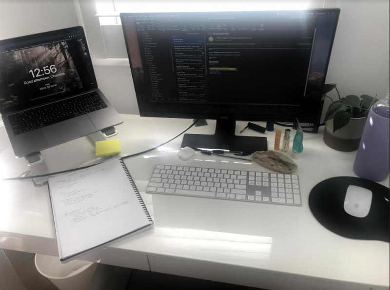 迷你屋共享电能她有更多的空间观念的办公室比她在分享会有房子,包括“我的双屏幕,我的笔记本支架”。