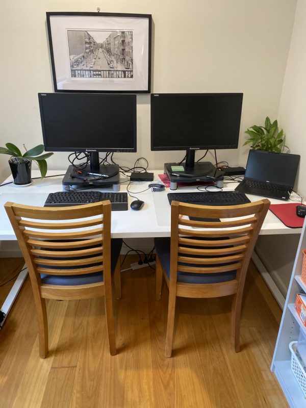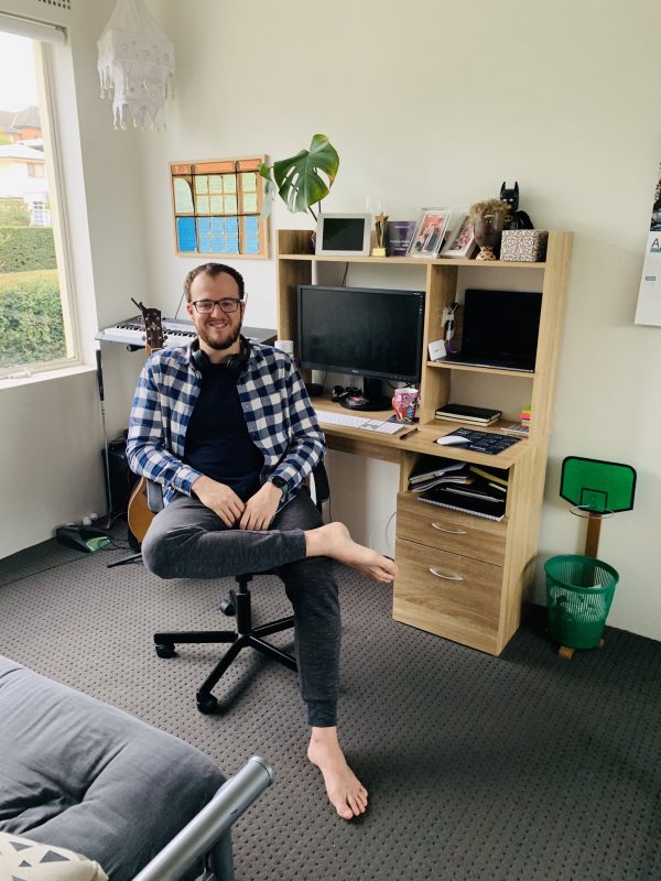 “我认为我们的工作我们的一居室公寓将是一个相当大的挑战。我们真的很幸运,我们已经能够将闲置的房间之一变成我们的办公室,这是伟大的。”