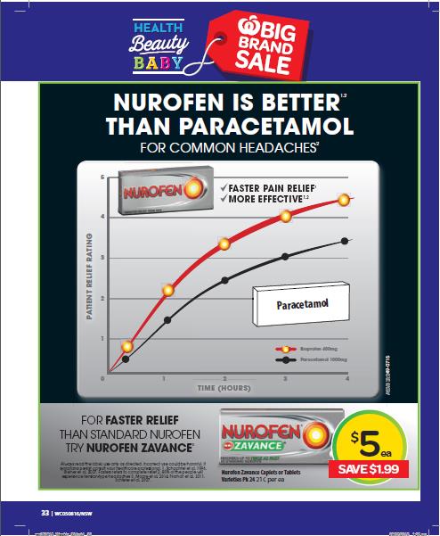 在我看来,这是误导或欺骗性的或可能误导或欺骗消费者在澳大利亚利洁时声称,布洛芬(Nurofen)提供更快和更有效的减轻疼痛引起的常见头痛包括t(紧张性头痛)比对乙酰氨基酚(扑热息痛)当唯一的研究支持这样一个明确的说法是Schachtel研究和平衡的科学知识是我上面解释。通过这种表示,利洁时也违背29 (1)(a)和29 (1)(g)ACL(澳大利亚消费者法律)。