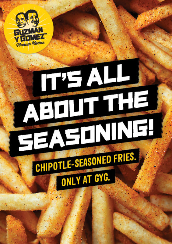 “这一切都是关于调味的!”庆祝GYG独特的自制chipotle味道,根据该品牌,该品牌将GYG的薯条与其他炸薯条不同。