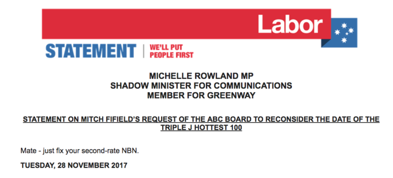 通讯部长@SenatorFifield指责@triplej的“政治宣言”通过移动# Hottest100倒计时pic.twitter.com/5nzzhyGpsF