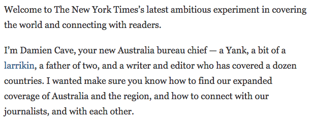 和纽约时报澳大利亚局长达明洞的介绍澳大利亚今天的读者,三个月后他的到来,真的蜱虫盒。