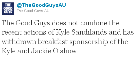 在白丝带日,很高兴看到大量的赞助商从卑鄙的凯尔的节目,2dayfm和austereo撤下他们的广告!
