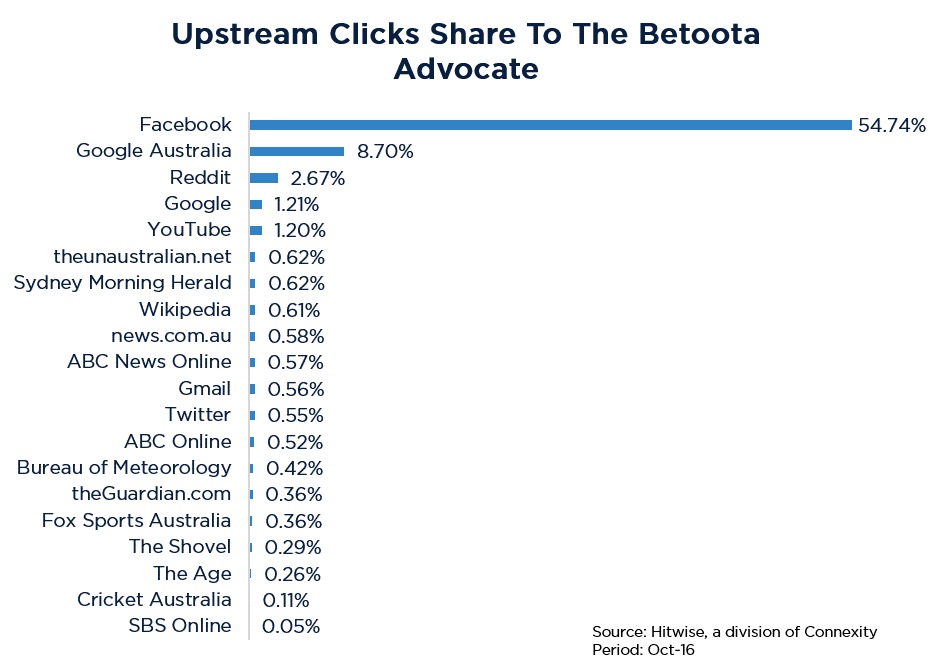 那么,是什么推动了这一惊人的成功呢?好吧,让我们来看看在2016年10月the Betoota Advocate之前访问量最大的上游网站: