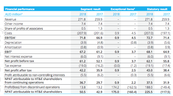 根据2018年法定收入数据(不包括Adshel), HT&E的业务——ARN、Gfinity Sports Australia和Emotive——公布了2.718亿美元的收入,高于2017年的2.599亿美元。