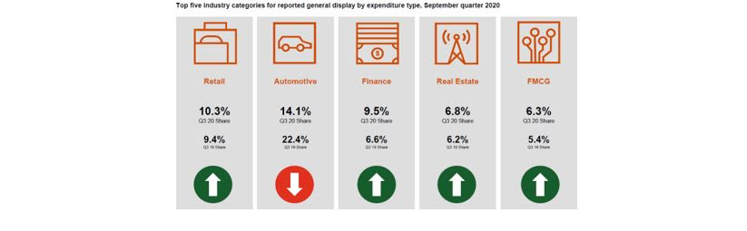 - 快消品广告自2017年6月以来首次跻身综合展示支出前五。