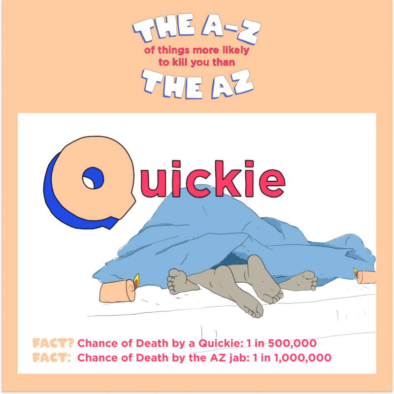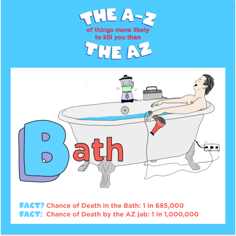 @TheFactsination发起了“用事实对抗恐惧”的活动,该活动将创造性的想法带到生活中,以解决澳大利亚人对AZ的犹豫,包括“比AZ更有可能杀死你的东西的A到Z”。