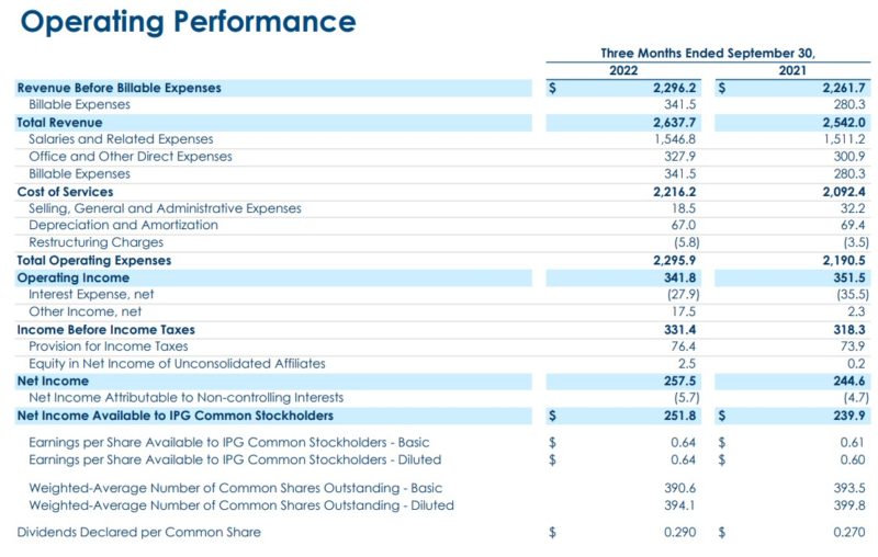 IPG 2022年第三季度收益:有机增长放缓,但上调全年展望