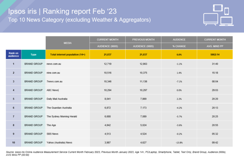 IAB虹膜和益普索已经发布了第二组月度数据根据新的测量系统,显示有2030万人在澳大利亚新闻网站或应用程序使用2月,较前一个月增长了0.2%。