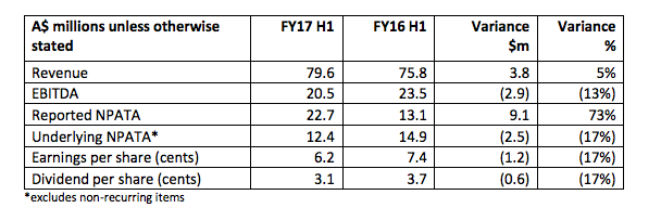 “在确定上半年业绩时,我们已经评估了2017财年的整体前景,现在预计澳新银行和亚洲SaaS/VAS业务将实现中到高个位数的收入增长,息税前利润(EBITDA)将实现低个位数的增长。虽然我对结果感到失望,但重要的是,我们正在采取一系列措施来提高执行力和发展业务。”