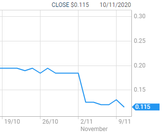 自连网络攻击以来,截至10月27日在收盘后10月10日,截至11月10日贸易关闭,股票价值已达到0.115美元。