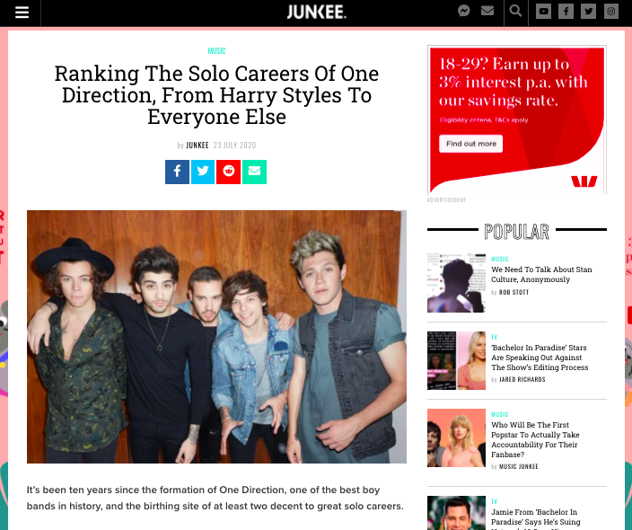 “令人失望的是,我们必须这样做。这是对音乐行业的这一特殊要素的悲伤起诉,它与Junkee Media的社论代码背道而驰,该代码说,除非有充分的理由不这样做,否则所有内容都应该有旁路。从执行编辑晋升为网站编辑总监-解释决定的文章。