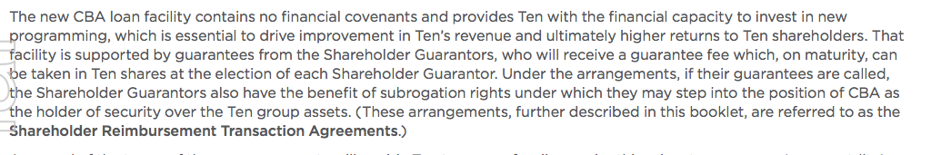 “赢家从这样的交易将是新闻集团(News Corp),,如果“三分之二的“规则被提出,可以买十(并将它添加到其Foxtel和天空新闻广播资产)。和ACCC的批准这样的交易将会加强,如果参与者似乎都可以声称十会破产的危险是由于其无法新资金来源或履行其债务的义务。”