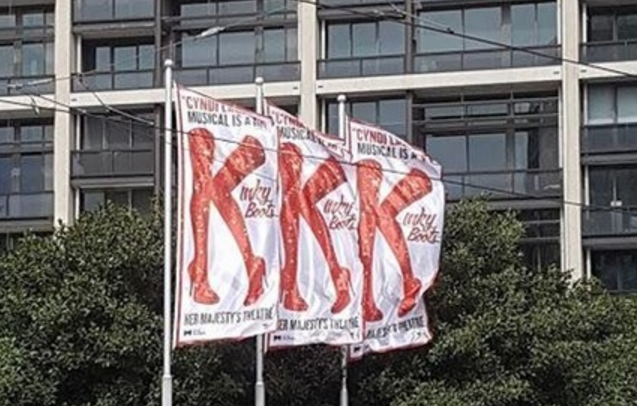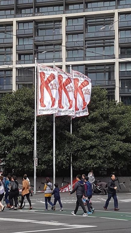 墨尔本的这些旗帜乍一看像是三k党(KKK)的大广告,但实际上它们是音乐剧《怪癖靴子》(Kinky Boots)的宣传: