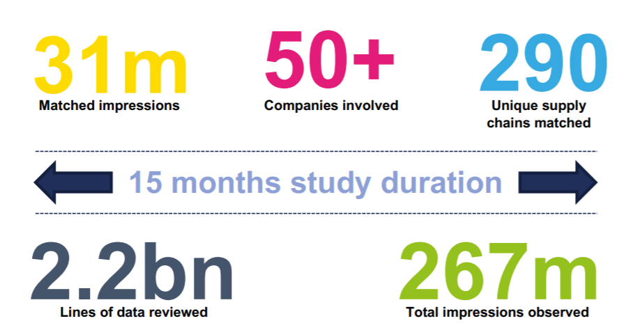 这份报告由英国广告商协会(ISBA)——英国广告商的贸易机构——在线出版商协会(AOP)和审计机构普华永道发布,涵盖了15个广告商、12家代理机构、5家dsp、6家sps和12家出版商,数据收集时间从2020年1月1日到2020年3月20日。