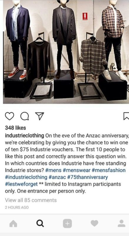 然后,他阅读了实际的主题标签 - #mens #menswear #mensfashion #industrieclothing #anzac#75 Therniversary #LestWeforget-以及神秘感。