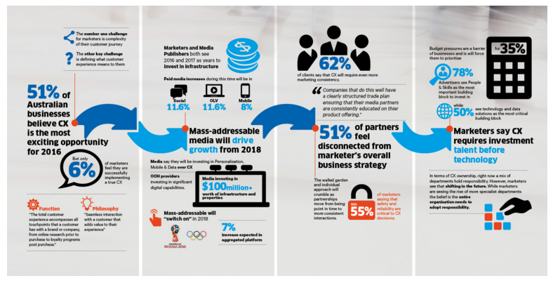 尽管51%的澳大利亚企业认为客户体验(CX)是2016年最令人兴奋的机遇,但只有6%的营销人员认为他们成功地实施了真正的CX计划。