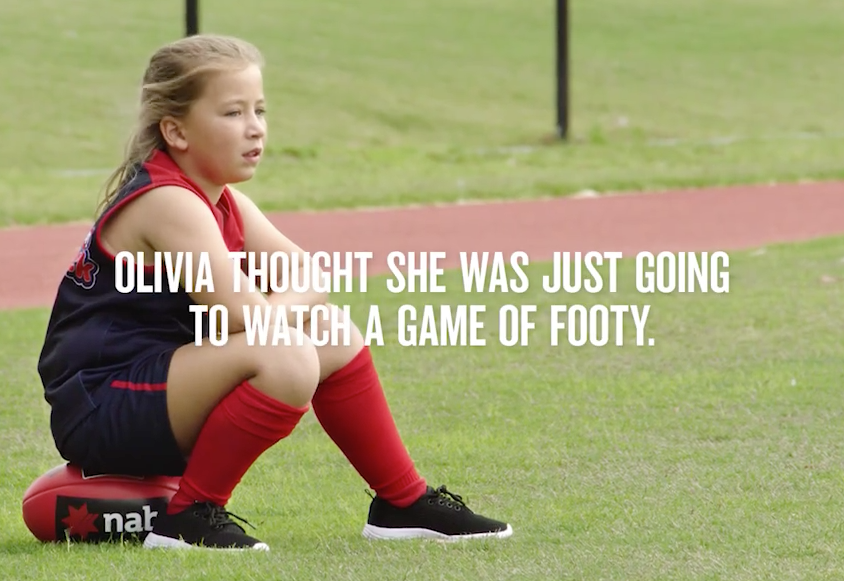 该活动由Clemenger BBDO墨尔本(Clemenger BBDO)墨尔本(Clemenger BBDO)创建,他看到了NAB AFL Auskicker的奥利维亚(Olivia),观看了墨尔本恶魔和GWS巨人之间的练习AFLW比赛,然后她“感到惊讶”,并被Demons的Captain daisy Daisy Pearce召集。