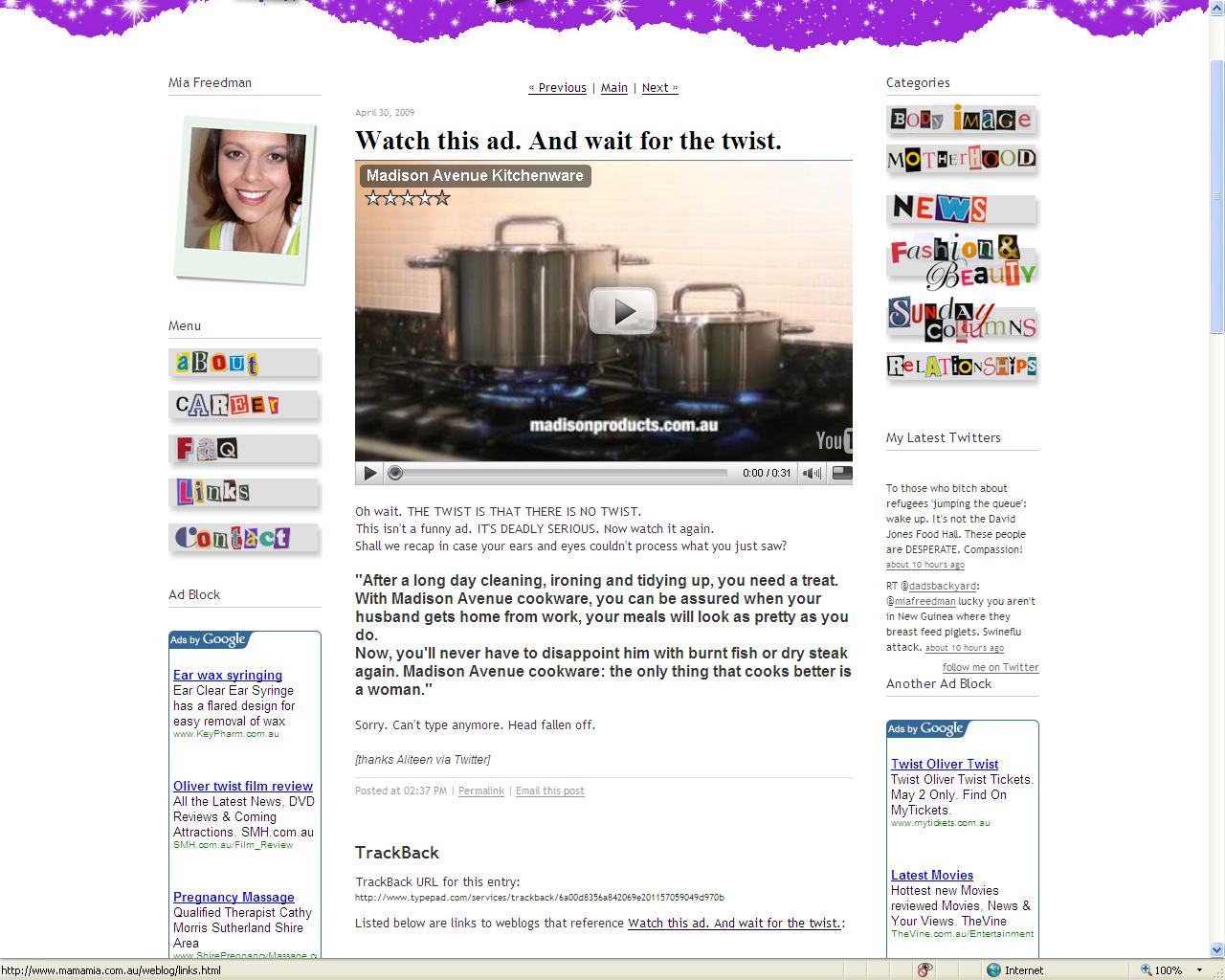在过去的几天里,您可能已经注意到这个网站上的麦迪逊炊具广告。也许你甚至可以点击,发现我们/剃刀对SBS的疯狂男人的最新工作。