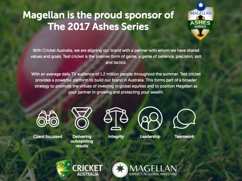 该公司的声明接着补充道:“麦哲伦于2017年8月与澳大利亚板球队签署了为期三年的合作协议,从最近的灰烬系列赛开始,基于共同的价值观和诚信、领导力、奉献精神以及坚定的客户至上文化。”