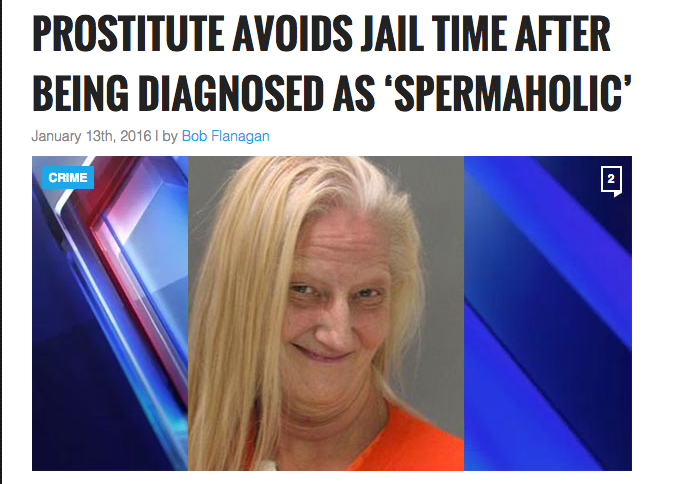 周五网站发表了一篇文章标题“一个女人已经从监狱被释放,因为她是一个spermaholic”,详细的德克萨斯的女人——叫做“X小姐”在文章中逃过因卖淫被判入狱,她的律师说她有一个饮食失调给她渴望男性精液。