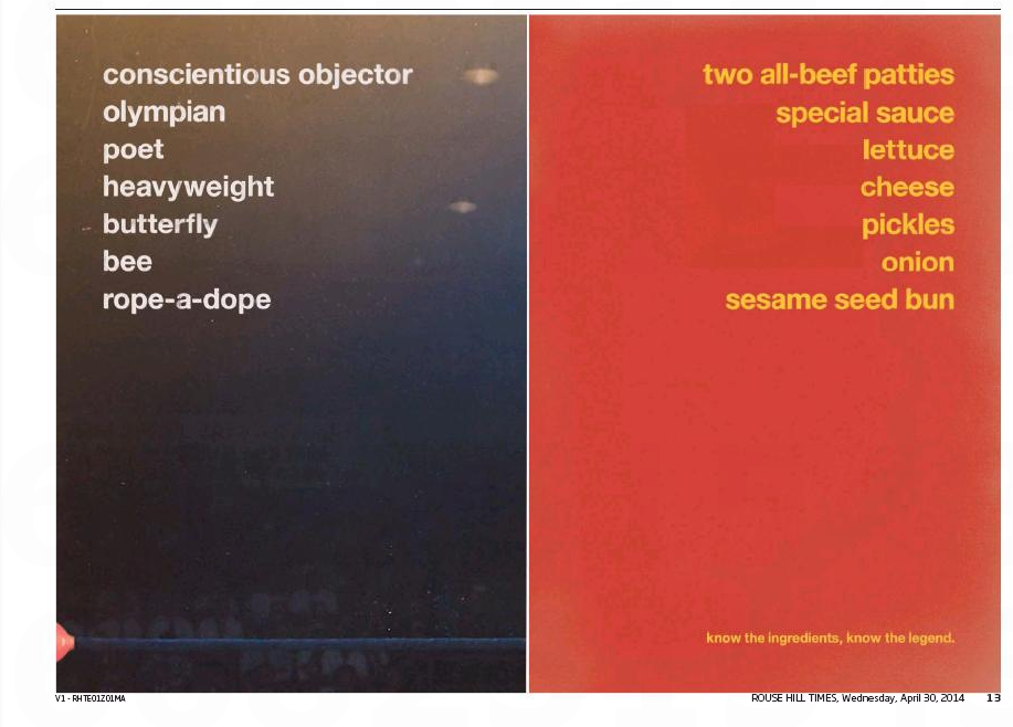 Commenting publicly for the first time on the ‘Big Mac Legends’ press campaign, Lollback claimed it was a “test” when it ran in the cheapest publication in the News Local group, The Rouse Hill Times.