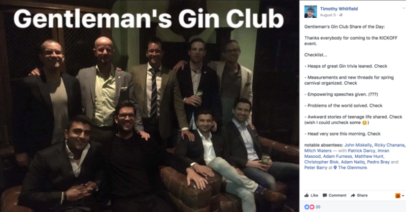 “我们对绅士杜松子酒俱乐部最失望的是,他们对澳大利亚传媒业最成功、最受人尊敬的高级领导人之一邀请加入‘俱乐部’的回应方式。正如你在脸书帖子中看到的,她的请求被驳回有两个原因。