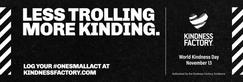 活动活动包括精心策划的Kindness Factory播放列表、弹出式Kindness Factory咖啡馆、在全国所有市场的大大小小的户外广告、Kindness Factory品牌广播流量更新、来自知名的Kindness支持者Erin Molan和Fifi Box的个性化Kindness Factory音频信息、澳大利亚主要报头品牌的编辑报道、与Fitzy、Wippa和Sandra Sully的广播提及、在世界善良日之前和前后,在主要数字网站的主页上放置,以及播客内容和采访。