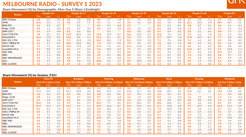 ABC墨尔本以来持续下跌的高度流行持续到2023年,网络现在坐在整体5.8%的份额,与新成员与萨米J早餐时,查理·皮克林未能产生影响,显示7.3%的份额跌0.7点。