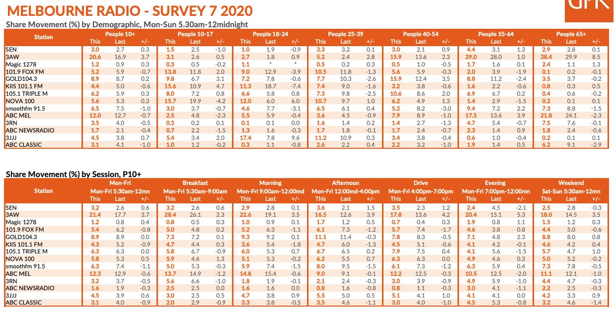 该调查涵盖了8月23日星期日至10月24日星期六,是今年的第七个和仅次于无线电行业在Covid-19期间从调查中休息。Howcroft.8月初加入3AW,更换长期早餐主机约翰伯恩斯。