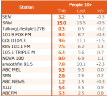 对于AM电台,3AW失去了牵引力,下降了0.7个点。因此,它不再是最多人收听的驱动器电台。
