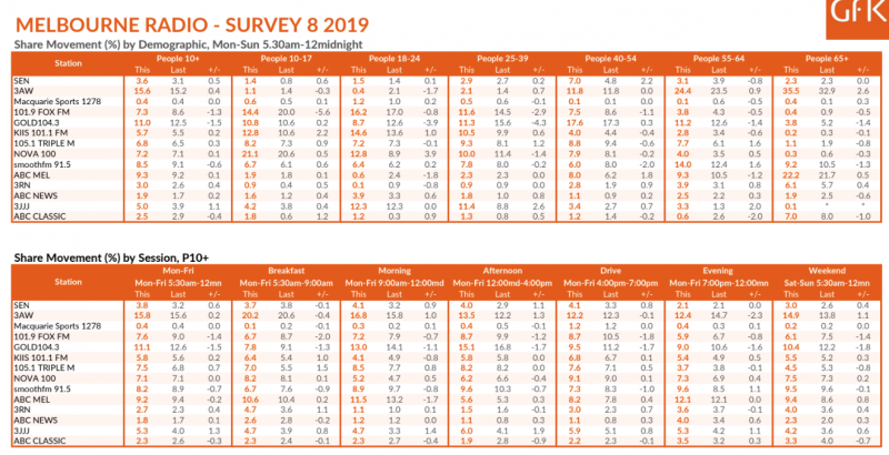 总体而言,3 aw墨尔本市场15.6%的市场份额,较去年增长0.4%。车站,和主人麦格理媒体,经历许多变化自收购9,包括出口的老板Stephen啤酒,他然后返回。它还将在2020年失去约翰伯恩斯当他退休。丹尼斯·沃尔特也从下午到晚上。