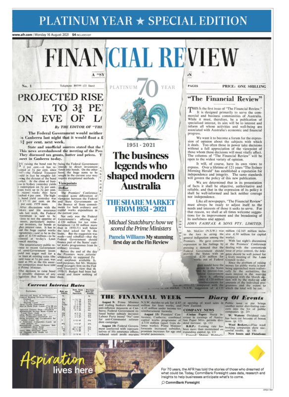 澳洲金融评论(误判率)本周70周年,是庆祝的时刻与一系列的内容计划,开始与一份12页的今天。