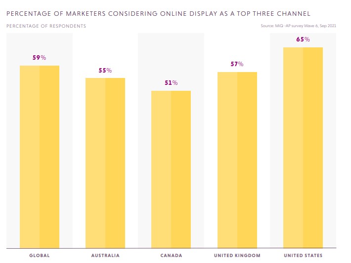 在相对成熟的市场,如美国和英国,低支出的广告更有可能继续积极扩张在展示景观,在加拿大和澳大利亚,大广告客户正在寻求投资于广告。