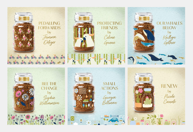 The design theme aligns to JDE’s mission for all of its packaging to be 100% recyclable, with each of the six winning jar designs – Pedalling Forwards, Protecting Friends, Our Whales Below, Bee The Change, Small Actions, and Renew – bringing to life a sustainability issue that its designer is passionate about.