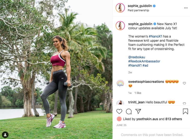 投诉样品后说,这是“误导”,因为它没有注意,这是一个广告或赞助。Mumbrella圭多林指出,与阿迪达斯和锐步的关系指出支付伙伴关系的披露和#广告标签在一系列其他帖子在她的帐户。