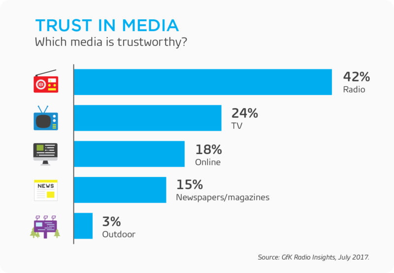 GfK insights研究显示,超过40%的澳大利亚人认为广播是最值得信赖的媒体