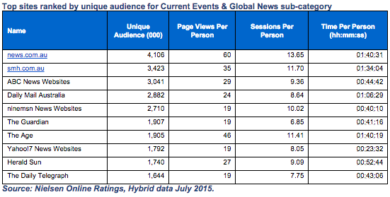 News.com.au声称七月突破独特的观众4.106米,6月增长10%