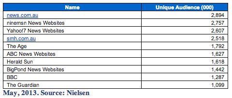 我不是Fairfax的粉丝(他们的质量已经下降到地板上,他们的网站被标题诱饵垃圾覆盖,让人想起Geocities),但如果他们将SMH和the Age网站聚合在一起,他们似乎会占据榜首。