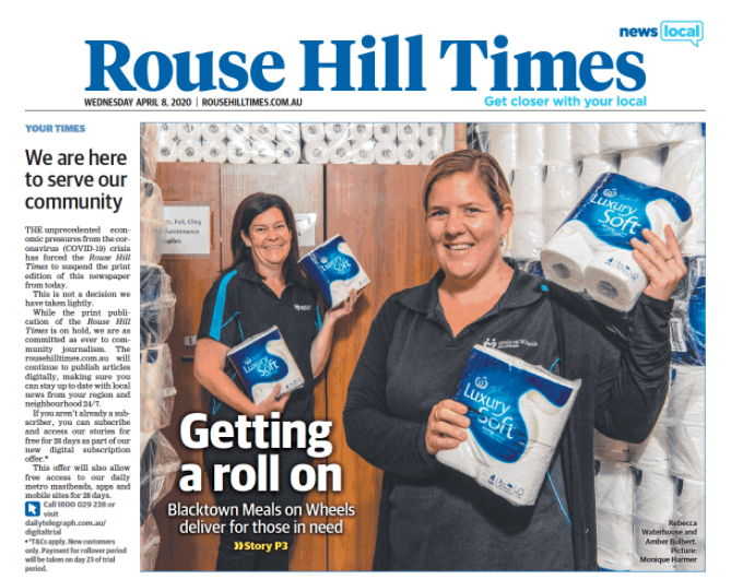 回复对当地新闻的需求。研究表明,大约有505澳大利亚人把他们的社区报纸(不仅仅是老年人)。在COVID-19当地社区成为更重要的是,我相信需要一个当地的报纸在未来将增长。