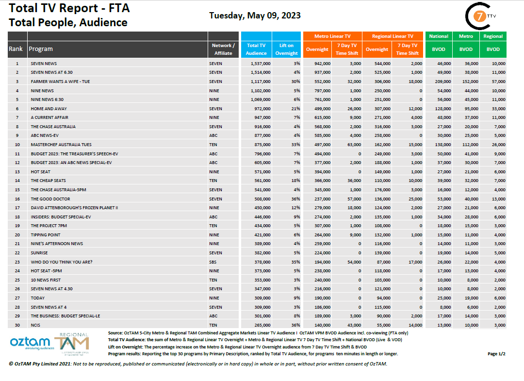 最近每天巩固7总电视报道5月9日,7新闻# 1项目与153.7万年地铁观众上升了3%,和46000年在国家BVOD。