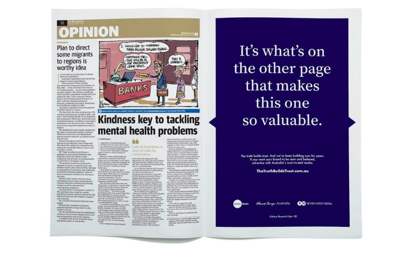 在NewsMediaWorks首席执行官彼得•米勒,在一份声明中说:“他们说你定义你的公司,同样的品牌和他们选择的环境中。如果你让自己身处真相,你将是可信的。作为澳大利亚最信任的新闻媒体,我们理想的地方品牌被认为和相信。真相构建信任。