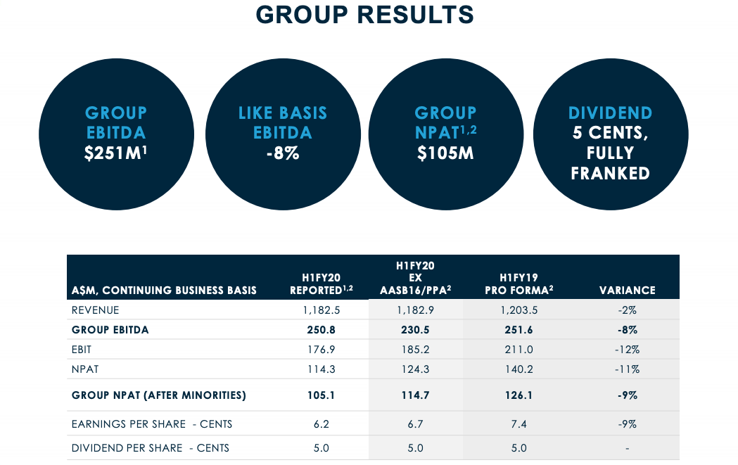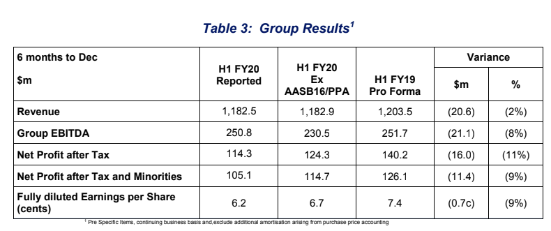 整个业务营收为11.82亿美元,比2019年同期下降2%,集团EBITDA下降至2.508亿美元。税后净利润为1.051亿美元。