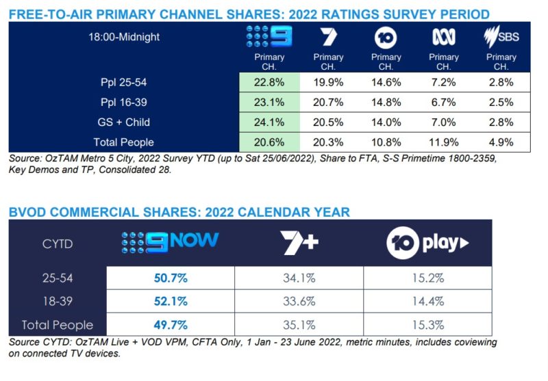 在2022年的中途,九发布了其半年报告,重申这是所有关键指标中排名第一的网络。