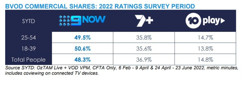 九个报道说,这是25-54,16-39的人和总人数中排名第一。这一领先优势在BVOD领域扩展,其中9个铅在商业FTA的演示中占据了50%以上的份额,总人数为49.7。