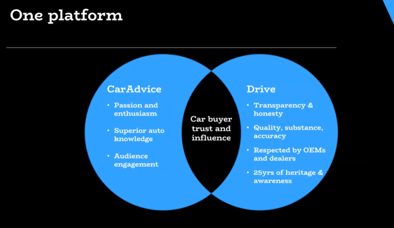 Drive and Car Advice首席执行官亚历克斯·帕森斯(Alex Parsons)表示,合并这两个平台将把两个品牌最好的部分整合在一起。