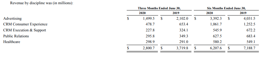 “全球经济形势动荡,经济不确定性遍及所有客户、行业和地区。总体而言,虽然我们拥有多样化的服务产品、客户和地理位置,但由于大流行对全球经济的影响不确定,营销人员在短期内减少支出,对我们服务的需求预计将继续受到不利影响。在2020年下半年,我们预计全球经济表现和我们的表现将因地理位置而异,这取决于各国政府如何有效应对COVID-19大流行,进而允许其经济重新开放。”